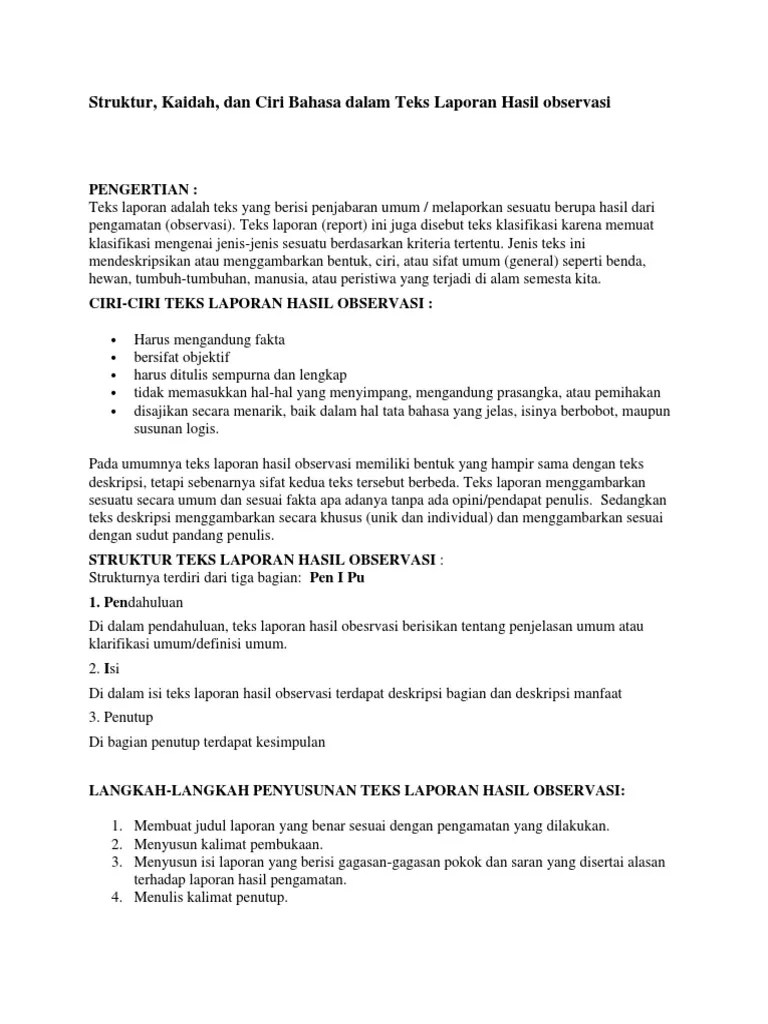 Yang Bukan Ciri-Ciri Teks Laporan Hasil Observasi Adalah / Bahasa Indonesia Teks Laporan Hasil Observasi / Teks laporan hasil observasi adalah teks bacaan yang dibuat untuk menjelaskan fakta dan informasi mengenai sebuah objek.